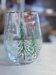 1ct; Bavarian stemless wine glass; green tree pattern with gold trim Hand wash only
