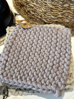 1pc; grey; knit trivet or pot holder; 100% cotton; 8in x 8in;