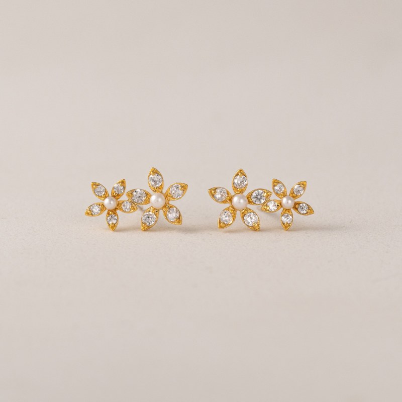 1 set; Lily Climber earrings; a fresh take on florals, these climbers are adorned with brilliant cubic zirconias for a feminine, romantic feel.