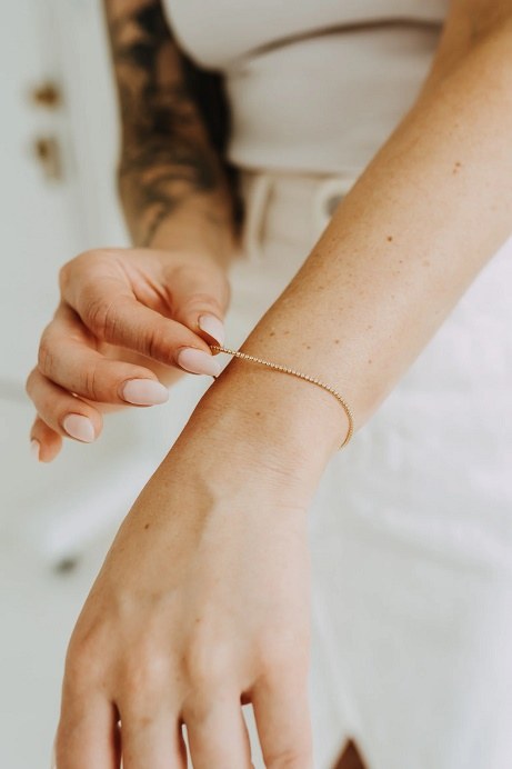 1ct; Waterproof; 6.5in -7in; micro tennis bracelet; crafted from 18k gold filled material
