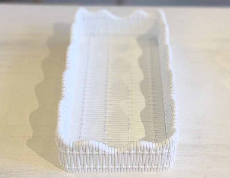 1ct; Resin scalloped rattan look guest towel holder; white;