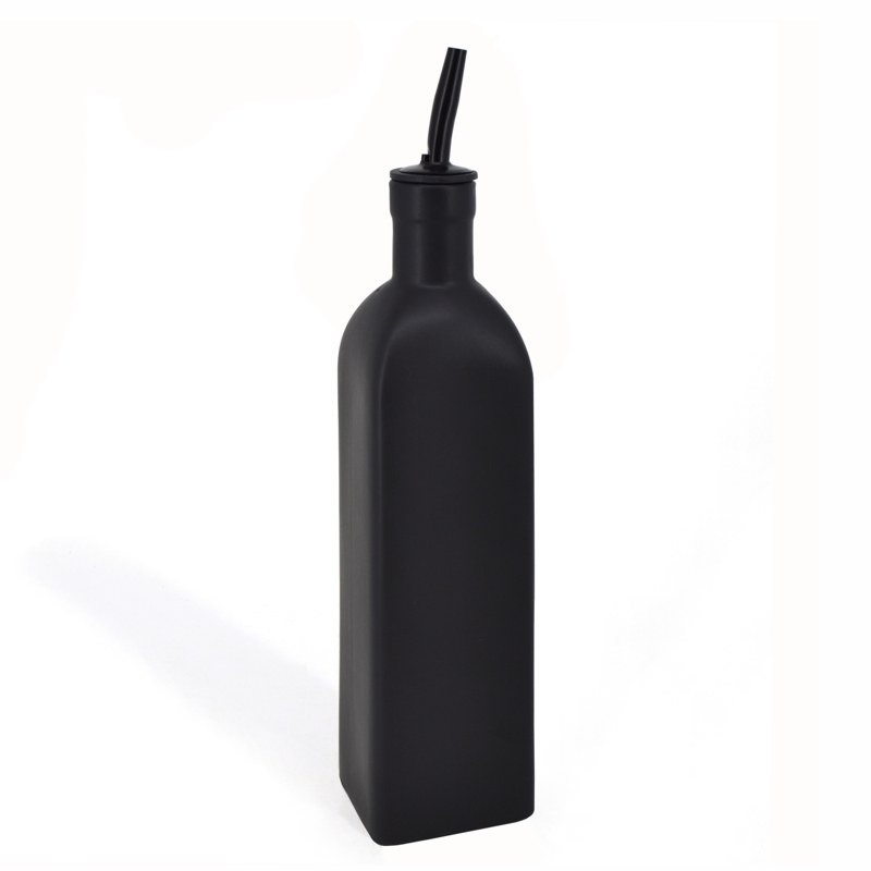 1ct; oil/vinegar bottle; black; stoneware; semi matte finish Pours easily without drips