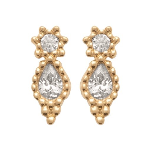 1ct; Soline Earrings; Gold plated; CZ Designed in Paris; Plated in Spain; 100& recycled 18K gold plated;
