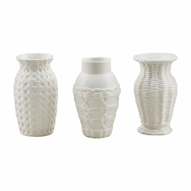 1ct; Woven basketweave bud vase; small; white; ceramic; 5.5in x 2.25in; shown on the left of picture